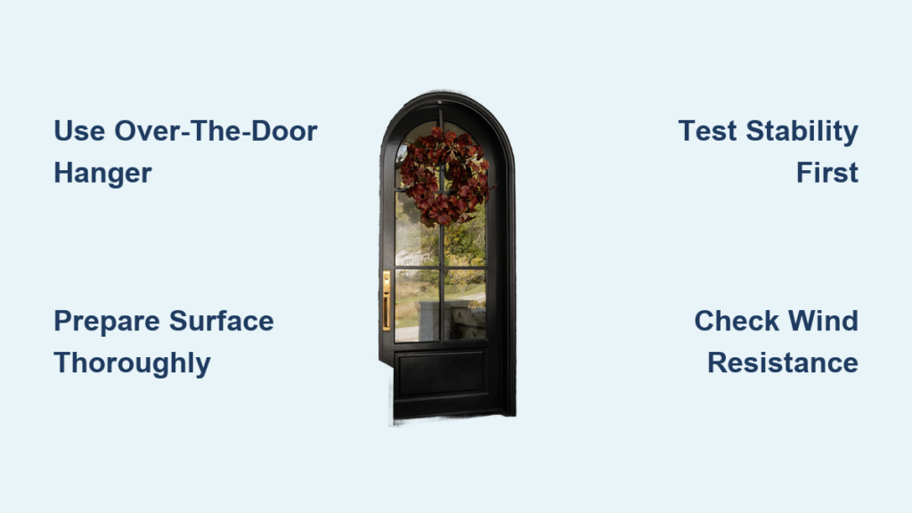 You’ve chosen the perfect wreath, but your elegant front door laughs at standard over-the-door hooks. Glass panels, delicate trim, and