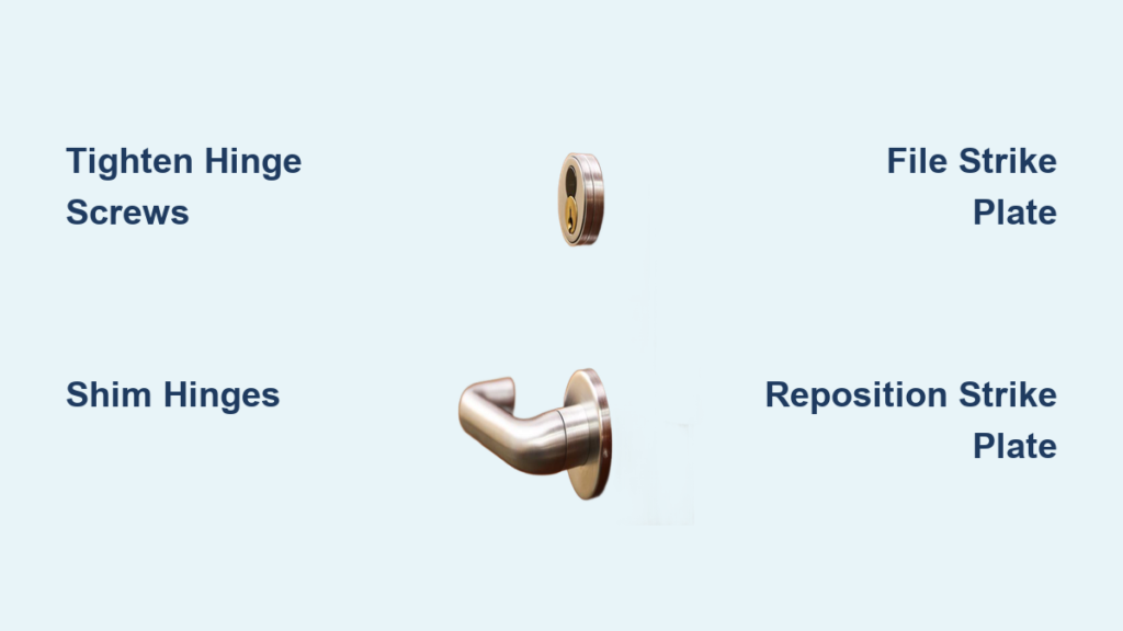 You turn the knob, push the door shut, and nothing happens. The latch refuses to catch, leaving your door stuck