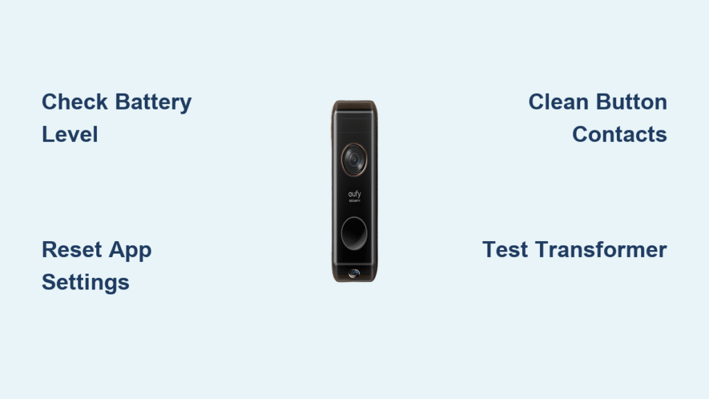 Dirt and moisture under the button prevent electrical contact completion—the #1 cause of “sometimes works” sound failures. Sticky buttons requiring excessive pressure indicate this issue. Skip this step, and your eufy doorbell sound not working problem will return within weeks.