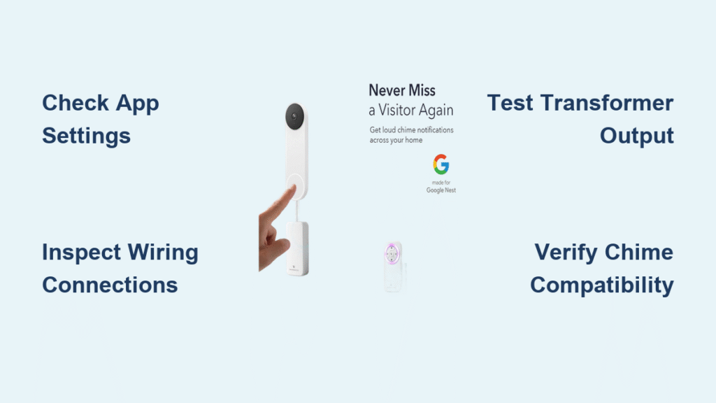 Important note: If you cannot locate chime settings in your app, your specific doorbell model may not support integration with traditional chimes. Consult Google’s official documentation for your exact model to confirm compatibility before proceeding with electrical troubleshooting.
