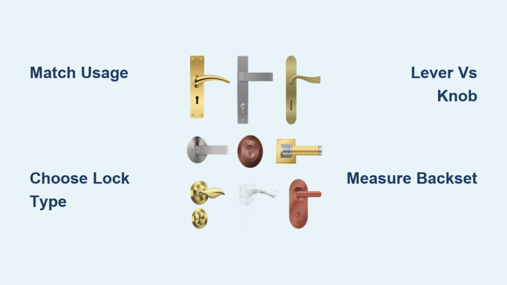 Bathrooms demand privacy locks with emergency access features, while exterior doors require maximum security. Installing a passage knob on your front door creates dangerous vulnerabilities, whereas a privacy lock on a closet wastes money on unnecessary mechanisms. Identify each door’s primary function first: Is it for security (exterior), privacy (bedrooms/bathrooms), or pure access (closets/hallways)? This single step eliminates 70% of wrong choices before you even consider style.