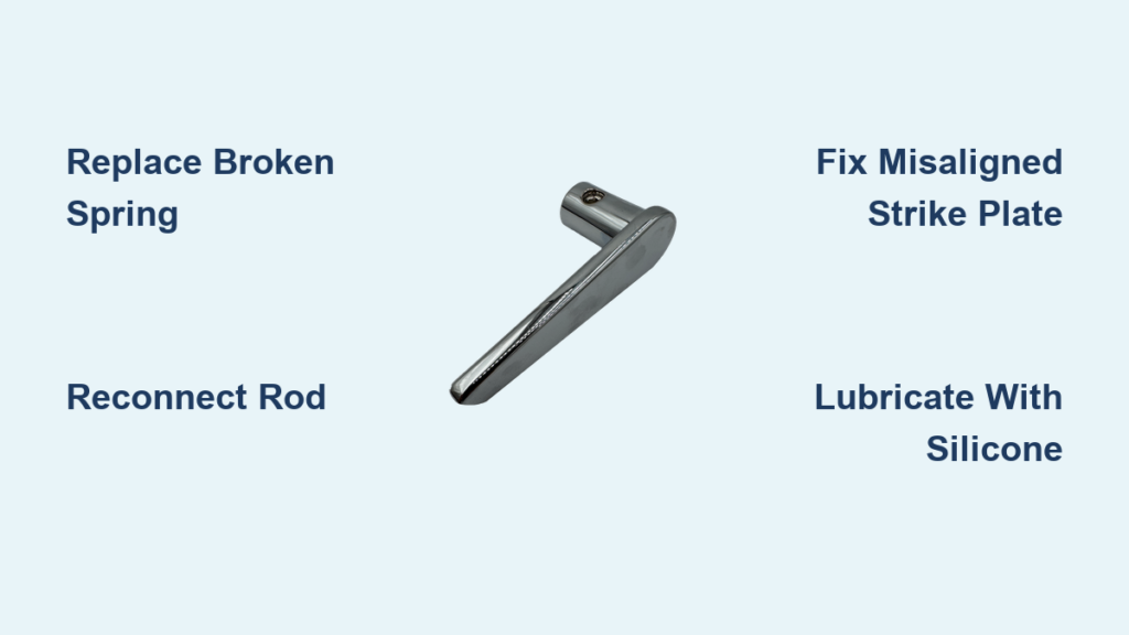 Latch moves but handle won’t return? → Broken spring (replace immediately)