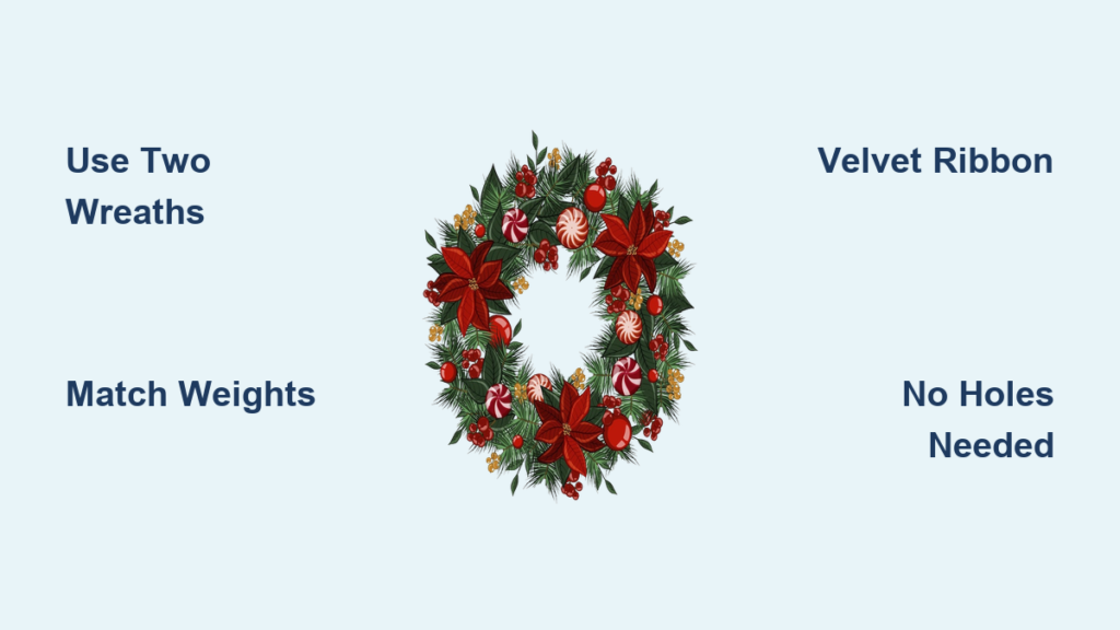 Grab a kitchen scale—this isn’t optional. Place one wreath on the scale, note the weight, then test others until you find a match within 15%. A 1.5lb grapevine wreath needs another 1.3–1.7lb wreath (real pine works; foam often too light). For heavy wreaths (over 2lbs), use 1.5-inch wide velvet ribbon—its textured surface grips door edges 3x better than satin.