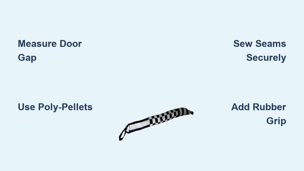 Most DIYers cut fabric too short, leaving drafts at door edges. Here’s the fix: Measure your door width, then add 5 inches total (2.5″ extra on each side). For a standard 36″ interior door, cut fabric to 41″ long. Height should be 4.5″ tall—enough to fill typical ½” gaps without bulging. Visual cue: Hold a ruler against your door sweep—your stopper must be taller than the gap height.